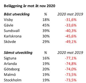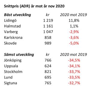 ”November är normalt i nivå med oktober vad gäller sålda rum och logiomsättning” säger Johan Johander på Benchmarking Alliance. ”Men i år dök de till ungefär hälften av de nivåer vi hade i oktober”, fortsätter han.