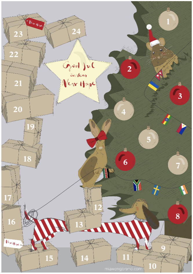 Därför hoppas Ingrid, Marie, Helena och Jim som just nu roddar med New Hope att många vill hjälpa till och sprida information om julkalendern och därmed även New Hope.