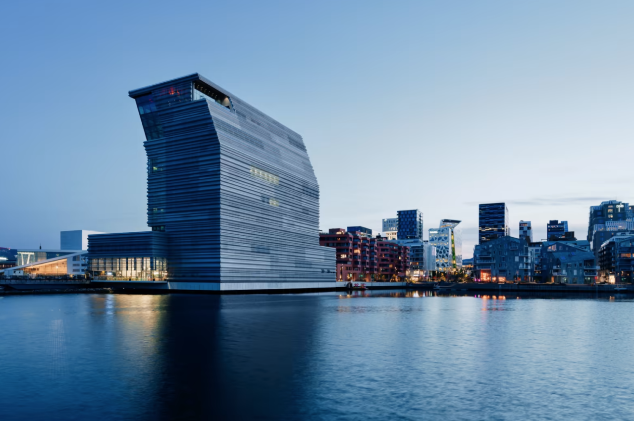 Det spektakulära 13 våningar höga museet vid Oslofjorden har världens största samlingar av Edvard Munchs konst och sägs vara världens största tillägnat en enskild konstnär. Det invigdes för två år sedan av kung Harald och har kostat 2,7 miljarder kronor.