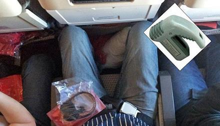 Reseindustrin Knee Defender är en sorts plastklämma som sätts fast på stolsryggen framför för att hindra…