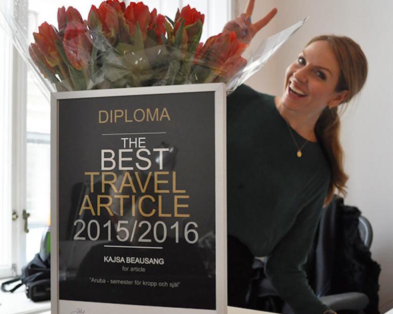 Den vinnande artikeln ”Aruba – semester för kropp och själ” handlar om Aruba som ny wellnessdestination och den kan du läsa här.