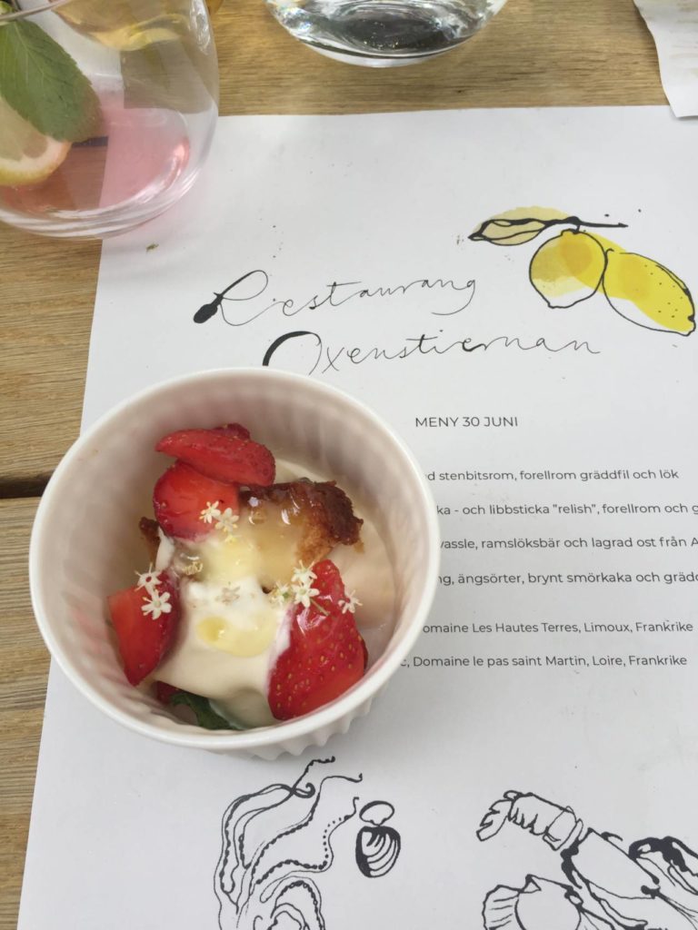 Den meny Travel News och det samlade pressuppbådet fick avnjuta var i viss mån en blandning av gamla favoriter och överraskningar. Vad sägs om stenugnsbakat bröd med stenbits- och forellrom med gräddfil och lök? Gigasostron? Eller grillad sommarkål med sockerärta, gräddfilsvassle, ramlöksbär och lagrad ost från Almnäs. Svenskt alltså, som utlovat.