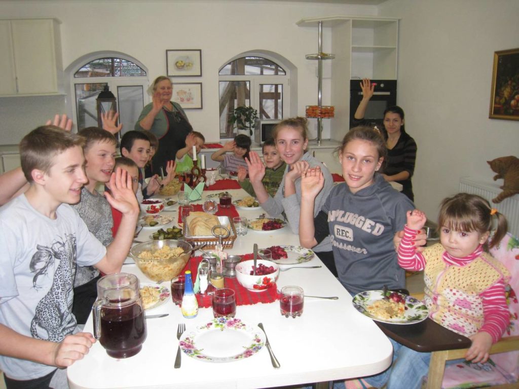 På barnhemmet Novy Dom försöker vi leva ett så ”normalt” liv som möjligt för barnens skull. Alla barn får hjälpa till med hushållssysslor och alla måste sköta sitt skolarbete även om skolan är stängd. Varje dag har de större barnen on-line undervisning. 9 mars fyllde Maxim, som varit hos oss sedan han var baby, 14 år. Vi firade honom med tårtfest, sång och presenter. Vi försöker ha pysselkvällar och vi har haft fest på pannkakor. Barnen skall inte bli deprimerade och börja oroa sig för vad kriget kan innebära för dem eller deras anhöriga. Men helt kan vi inte avskärma barnen från krigets verklighet! Sedan ett par dagar tillbaka har vi två flyktingfamiljer boende hos oss. Vi kan inte låta barn sova på gatan och det är ont om sovplatser.