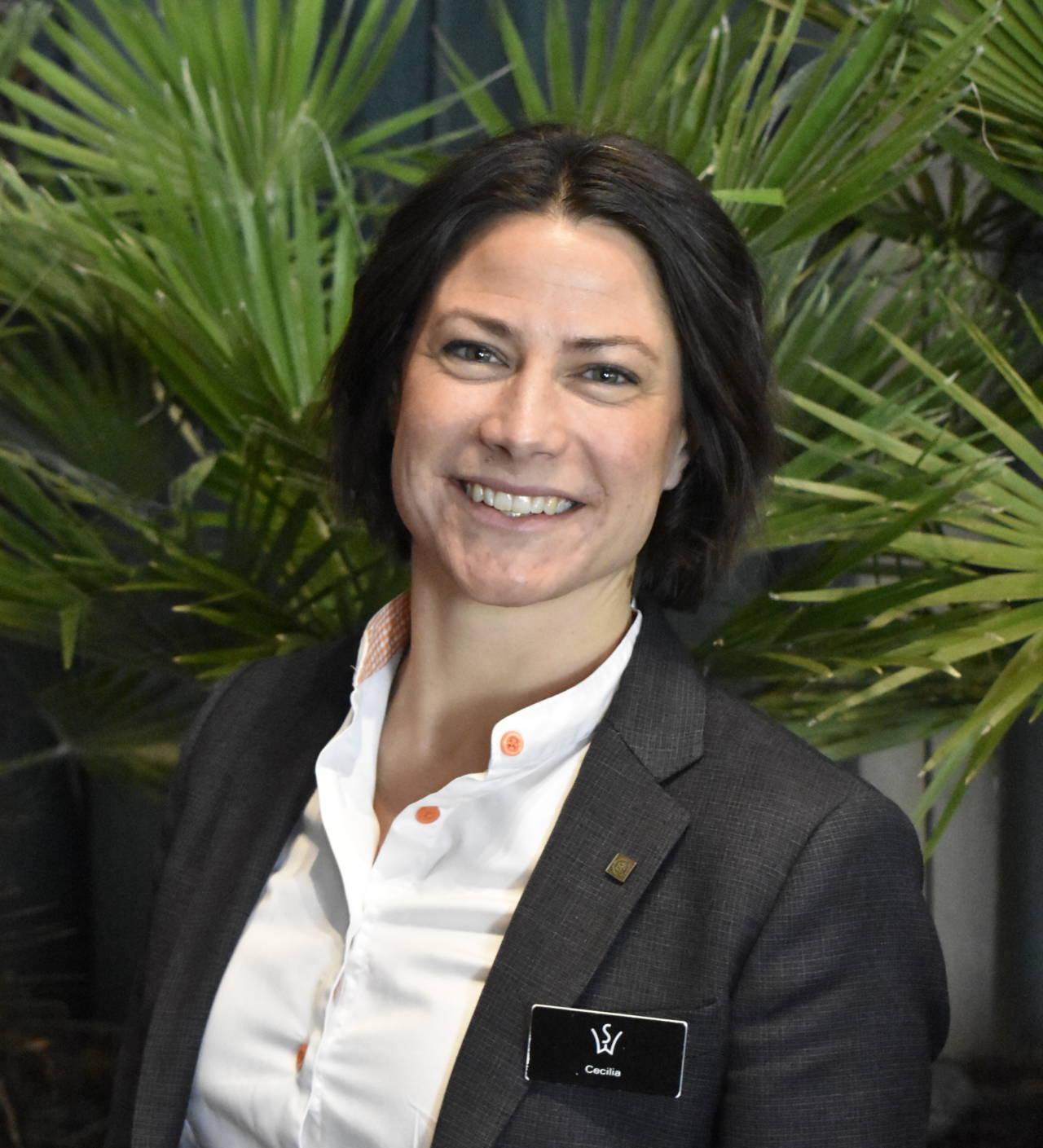 ”Att ha en gedigen bakgrund inom företaget känns som en riktig fördel. I den här branschen gäller det ju att det finns en förståelse och ett gott samarbete mellan alla avdelningar, så allt rullar på”.  Cecilia – som älskar att träna och vara ute i naturen – sprudlar av energi och vill gärna förmedla den energin i sitt yrke.  ”Jag brinner för att gästen ska gå härifrån med mer energi och en känsla av att ha blivit personligt bemött genom det lilla extra”.