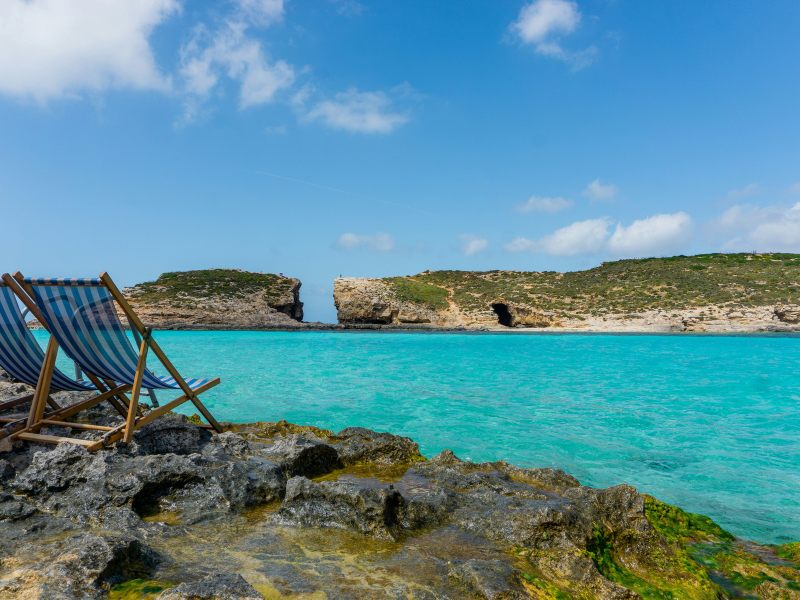 På färjeturen från Malta till Gozo passerar du Comino, en liten och orörd ö känd för sitt kristallklara vatten och populära Blue Lagoon (inte att förväxla med dess namne på Island) – ett paradis för dem som älskar att snorkla och bada i kristallklart azurblått vatten. Den lilla ön har endast två fasta invånare men besöks ofta av turister som anländer i sina egna båtar eller med en av färjorna som trafikerar ön från Malta eller Gozo. Comino erbjuder en unik och rik flora av växter och örter, och här finns också ett litet hotell. Ön är nästan bilfri (med undantag för invånarnas egna fordon) och inga vägar är asfalterade. Comino är helt enkelt ett skyddat paradis.