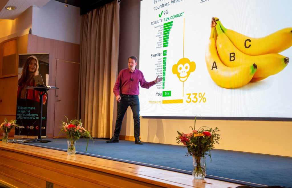Den sista delen av mötet hölls med stor energi av dagens huvudtalare Ola Rosling från Gapminder, som på sitt entusiastiska och pedagogiska sätt förklarade för oss hur världen egentligen mår och hur våra hjärnor ofta grundar dagens sanningar på fördomar om vår omvärld, istället för fakta.