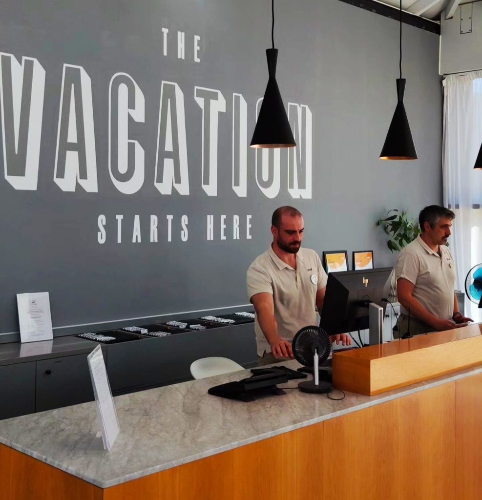 Självfallet träffar Claes Pellvik redan i foajén en man som driver en eventbyrå och dennes familj. Han går runt i spegelsolglasögon och intygar att han haft en fantastisk semester. Beläggningen på dessa tre enheter är 99 procent. Byte av gäster sker strikt på veckobasis onsdagar, fredagar och lördagar, men förstås är lördag den stora dagen. Då får du en ledig dag när du kommer hem och måste inte offra en semesterdag i onödan.