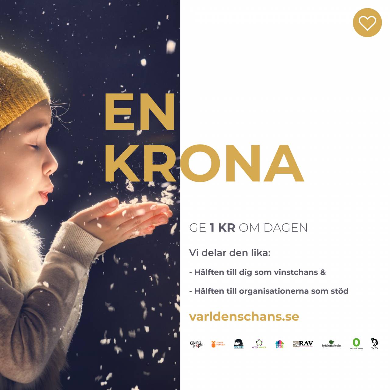 Lotteriet Världens Chans är ett nytt initiativ, där nio hjälporganisationer gått samman. Den gemensamma nämnaren är att samtliga organisationer syftar till att stötta och hjälpa när livet prövar. Den långsiktiga finansieringsfrågan är en konstant utmaning i många ideella organisationer idag och den tar mycket tid i anspråk. Det är utifrån den grunden som initiativet Världens Chans kom till. Av varje krona i lotteriet går hälften oavkortat till hjälporganisationerna och hälften till kunderna som vinster.