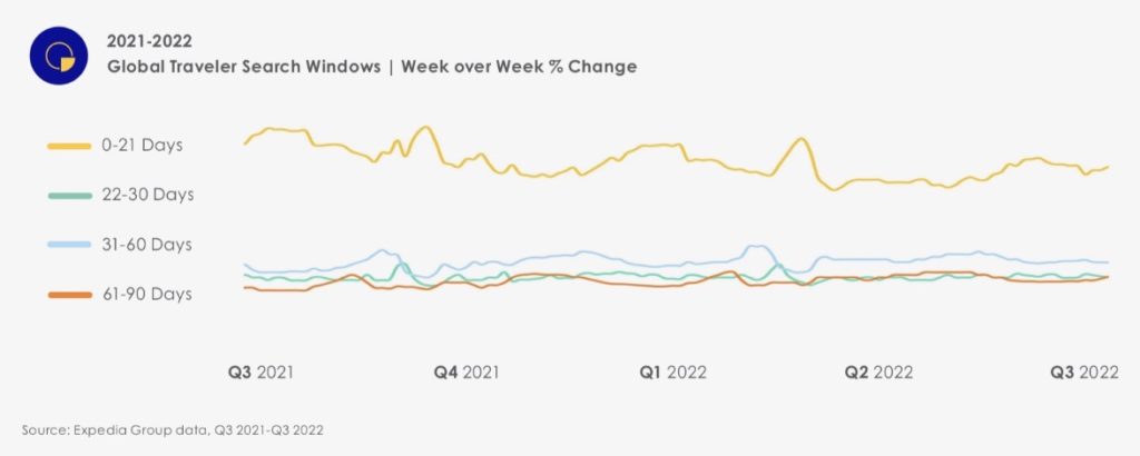”Korta bokningar” nära inpå resan fortsätter dominera, visar Expedias data. De kom att dominera under pandemin på grund av osäkerhet runt restriktioner och inställda resor. Men trenden fortsätter, visar de.