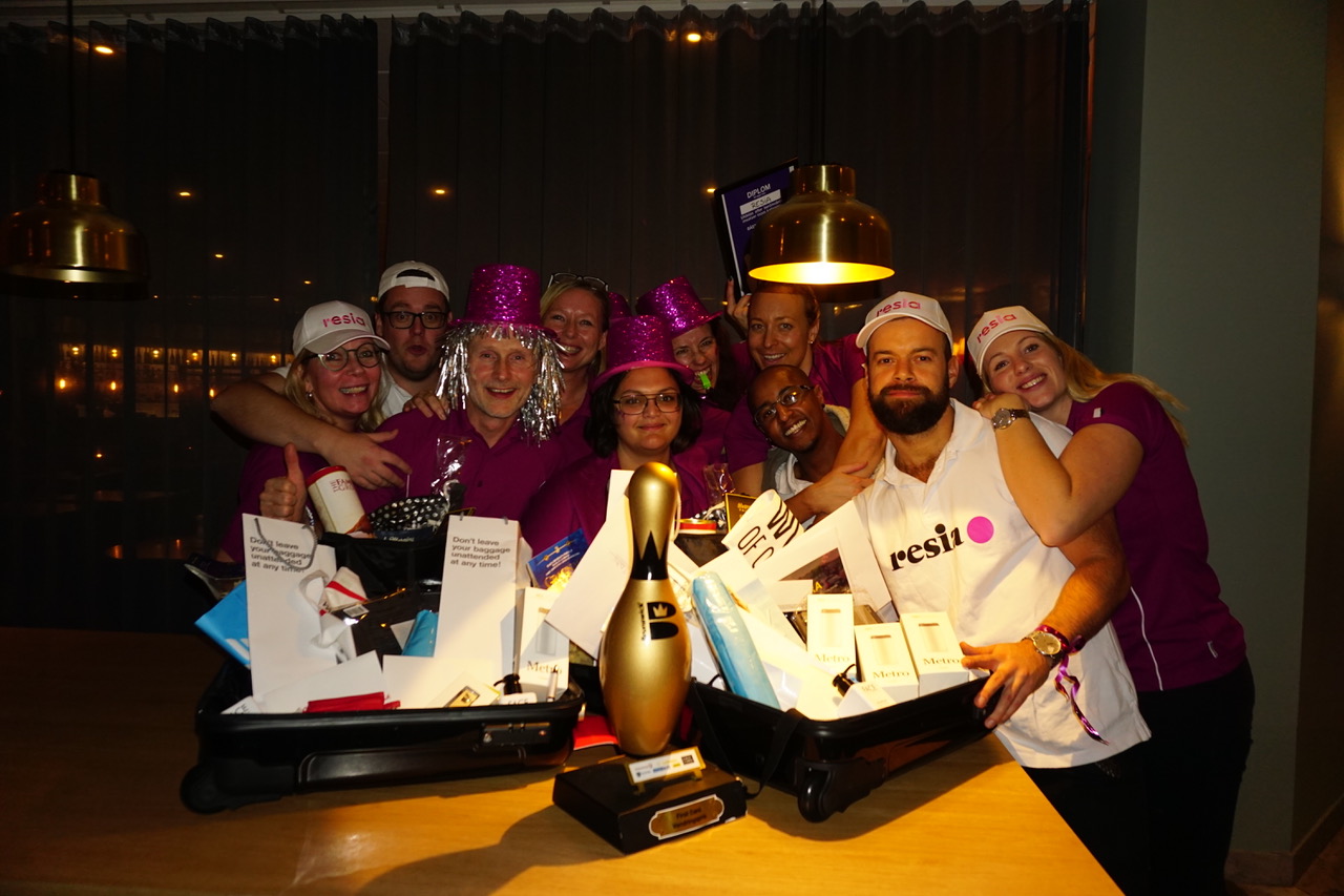 Det var hela nio resebyråer som samlats på Scandic Crown för att göra upp om titeln. Kvällens överraskning var Amex GBT som kom med den skönsjungande popstjärnan Petra Eliasson omgärdad av livvakter. Det blev inte tillräckligt med poäng på bowlingbanan men de belönades med vandringspriset för Bästa Outfit och Petra erhöll specialpriset som ”Årets sångfågel”, vilka delades ut under middagen.