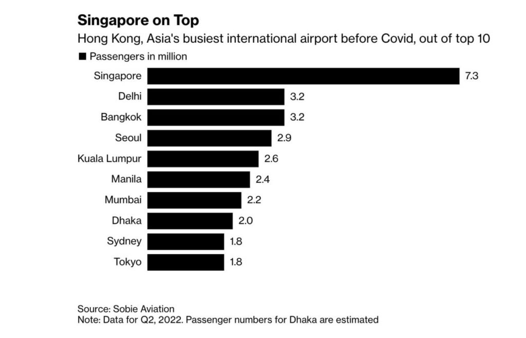 Hongkong var Asiens flygnav tidigare, men har fortsatt Covid-karantäner och andra gränsrestriktioner. Singapore tar allt tydligare deras tidigare plats.
