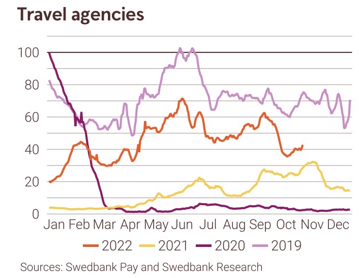Resebyråerna som hade en kortvarig återhämtning i bokningarna av sommar- och höstresor minska också jämfört med tidigare år.
