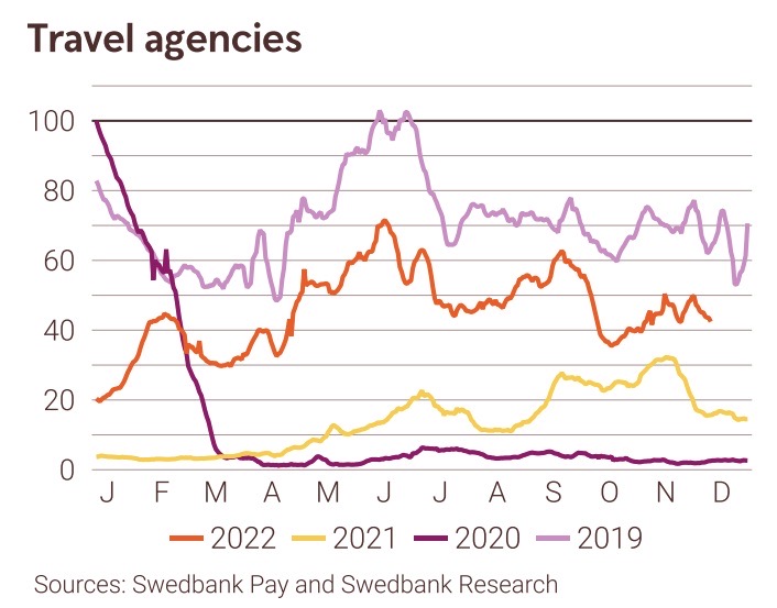 Resebyråer ligger fortsatt på en nivå en bra bit under 2019.