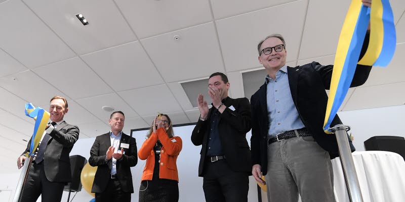 Äntligen fick bandet till den nya terminaldelen klippas, vilket Anna Strömwall gjorde med bravur med Swedavias vd och koncernchef Jonas Abrahamsson vid sin sida och under muntra tillrop, applåder och glada miner.
