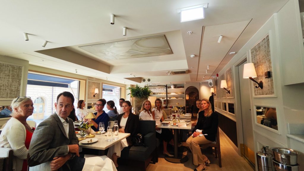 I restaurangen basar kockgänget bakom restaurang Aloë. Det finns runt 60 stolar matsalen, varav tio är i ett chambre separée med vacker skogstapet från Italien. Rummet funkar både för styrelsemöte och middag.