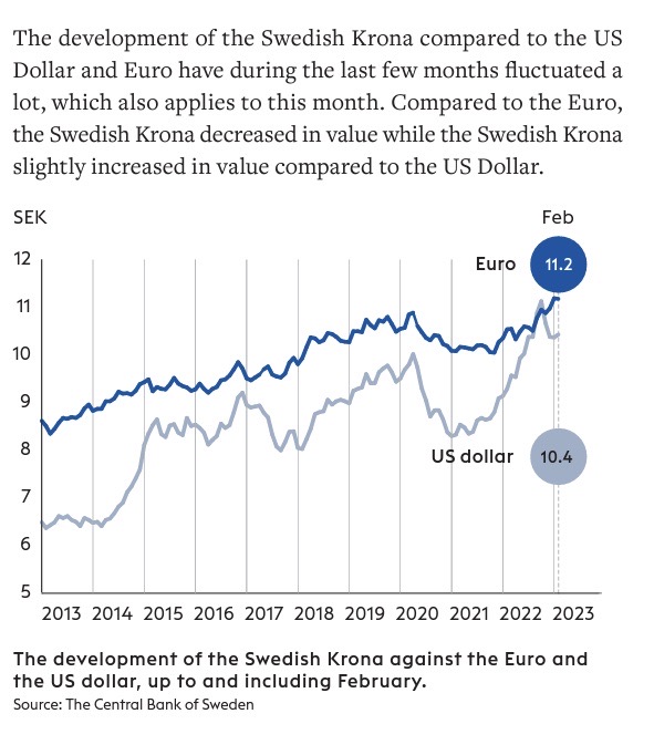 Den svaga svenska kronan gynnar utländska gäster som besöker Sverige. Kontra euron fortsätter försvagningen, men mot dollarn har en viss återhämtning skett.