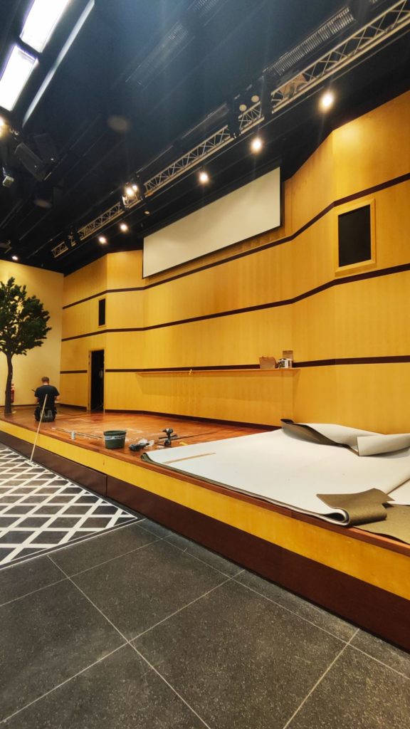 Innanför restaurangområdet ligger den stora hörsalen som fått namnet Carl Milles. Det är stengolv, men Torbjörn lovar att akustiken kommer att bli perfekt tack vare de ljudabsorberande väggarna. Övriga rum i huset har fått namn som Wilhelmina och Astrid.