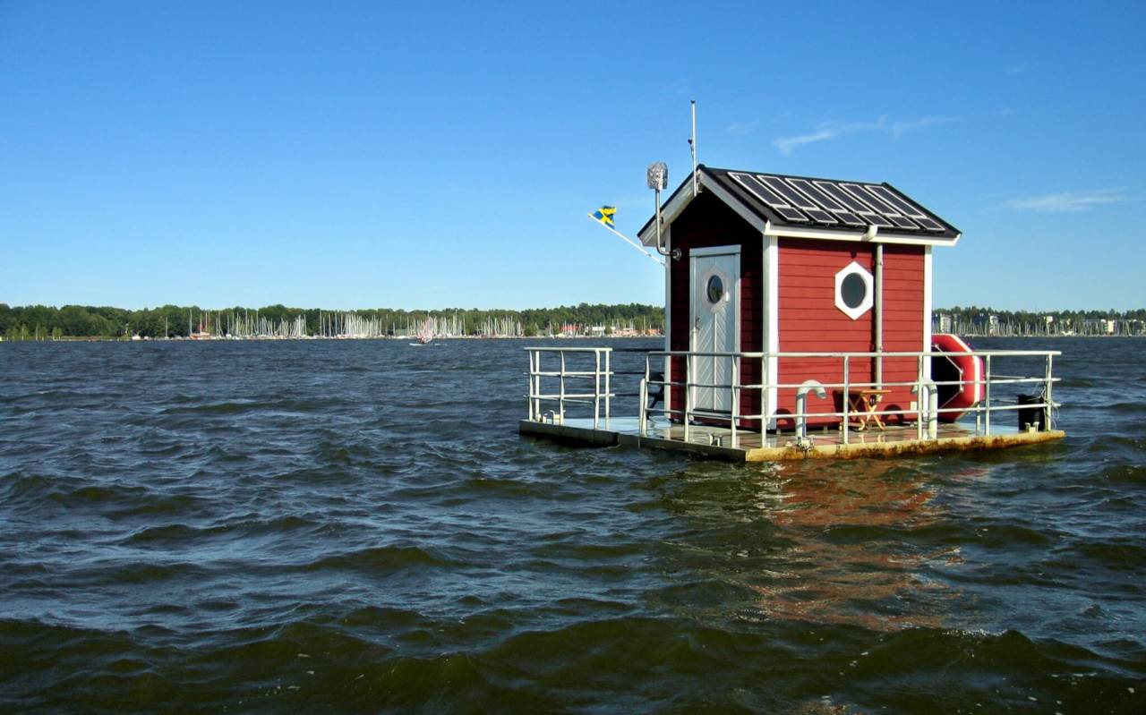 Hotell Utter Inn ligger cirka en kilometer ut från Östra hamnen. Den röda stugan står på en flytbrygga på 25 kvadratmeter. Sovrummet, med två bäddar, ligger tre meter under vattenytan och har panoramafönster åt alla håll. Utter Inn kommer att vara öppet mellan 1 maj och 30 september.