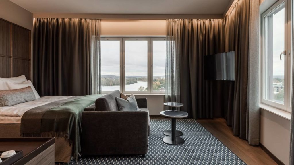 Vi börjar med det nya hotellet: Clarion Hotel Umeå. Det ligger enligt Petter Stordalen närmare älven än de andra stora hotellen i Umeå. I en helt nybyggd fastighet finns 270 rum med 584 bäddar, 14 konferensrum och två restauranger. Fastighetsägaren är Diös, men hur långt hyresavtal man skrivit på är en smula oklart.