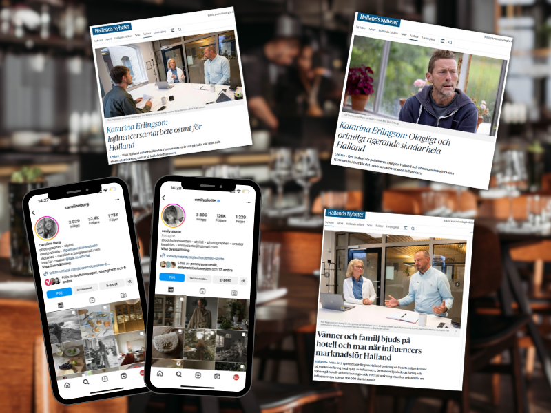 Tidningen Hallands Nyheter har i en serie artiklar avslöjat hur regionens Visit Halland försöker locka besökare genom att betala influencers en kvarts miljon för att gå på krogen och bo på hotell. Krognotorna där även influerarnas vänner och makar smörjt kråset skickas till den kommun de besökt.