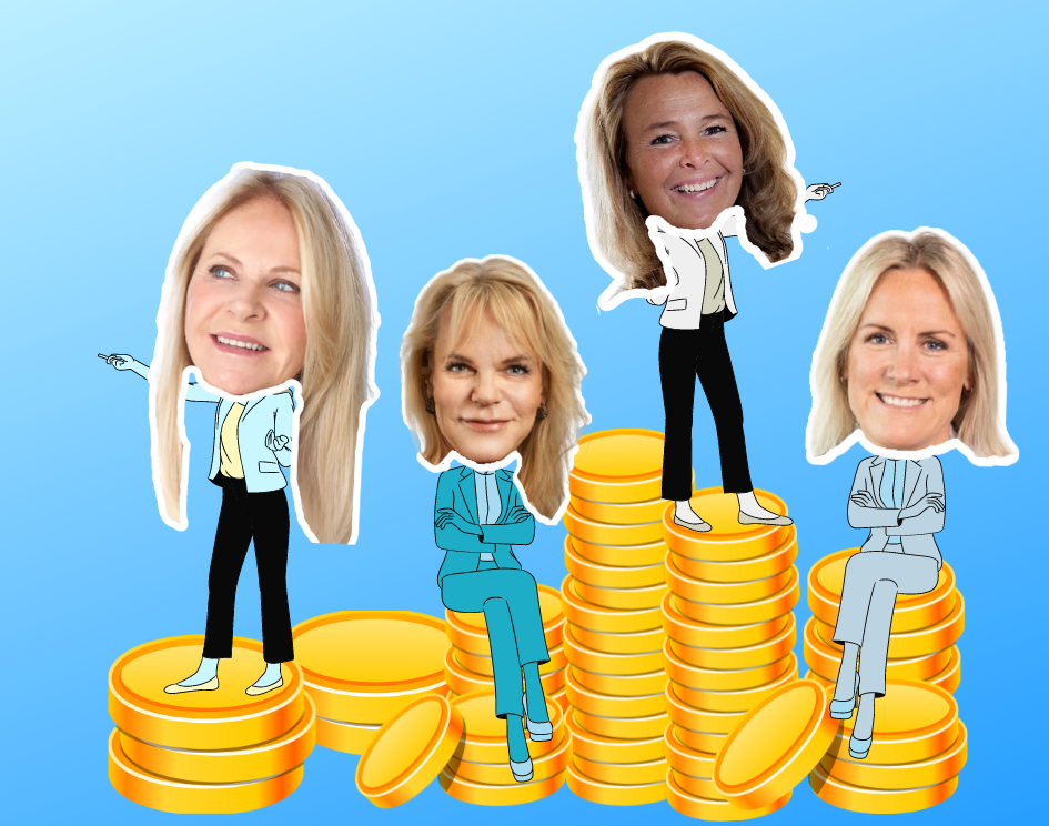 Först kan vi plocka bort Carina Åkerström från kvinnotoppen. Hennes 15 miljoner kommer från vd-jobbet på Handelsbanken, bara 300 000 från styrelseuppdraget i Skistar.