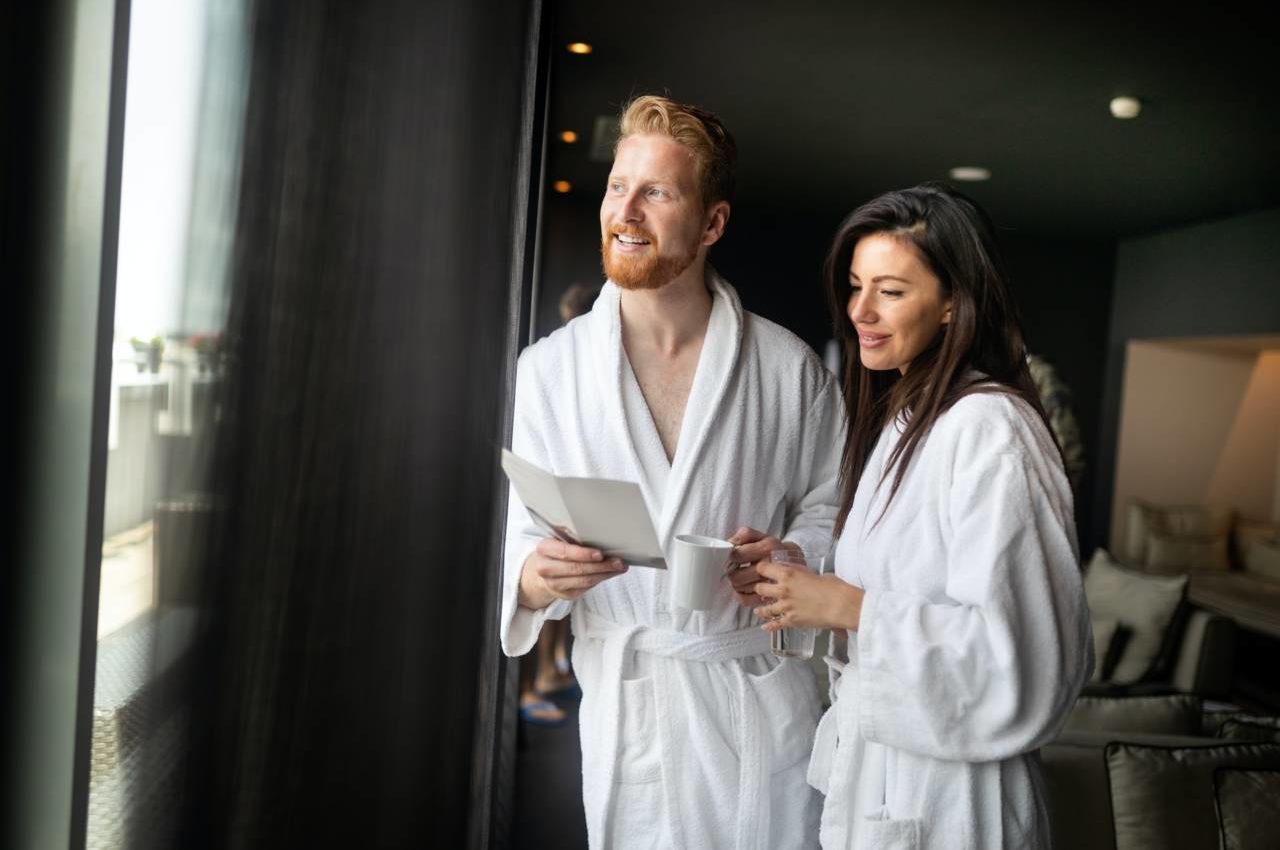 Kategori: Detta är ett romantiskt hotell för dig som tycker om att gå runt i morgonrock. Det finns inget bättre än massage och varmt porlande vatten. Men det ska också finnas ett fräscht gym och en bastu som är beroendeframkallande. Torr- och ångbastu förstås. Efter en helg här har din höga puls gått ner och ditt välbefinnande gått upp. Du är här med din partner eller ditt tjej- eller gubbgäng. Och ja, ni hinner även spela lite padel och gå en lång promenad.