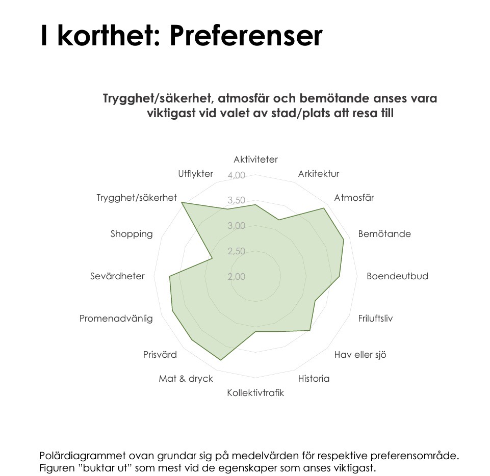 Av stor vikt är också att resmålet uppfattas som tryggt och säkert. 9 av 10 svenskar säger att det är ganska eller mycket viktigt att resmålet är tryggt och säkert.