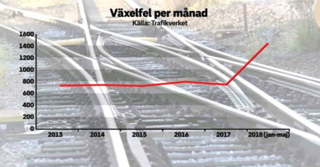 Från årsskiftet och fram till och med den 23 maj i år hade över 7 200 växelfel rapporterats till Trafikverket. Det kan jämföras med närmare 9 000 växelfel under hela förra året.