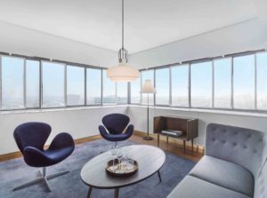 Under åren har hotellet renoverats ett antal gånger. Men det finns ett rum kvar med original inredning. Heltäckningsmattan i rum 606 känns inte så fräsch. Men att sviten har ett badrum för mannen och ett för kvinnan (badkaret finns förstås i det senare) är grymt coolt. Lobbyn har blivit riktigt bra, men allra bäst är rummen. Jag fick se ett hörnrum som var fantastiskt. SAS k-märkta logga sitter kvar på fasaden, men flygbolaget har inget med hotellet att göra. Radisson sköter driften av de 261 rummen. Renoveringen av de sista rummen högst upp väntas vara klar om några veckor.