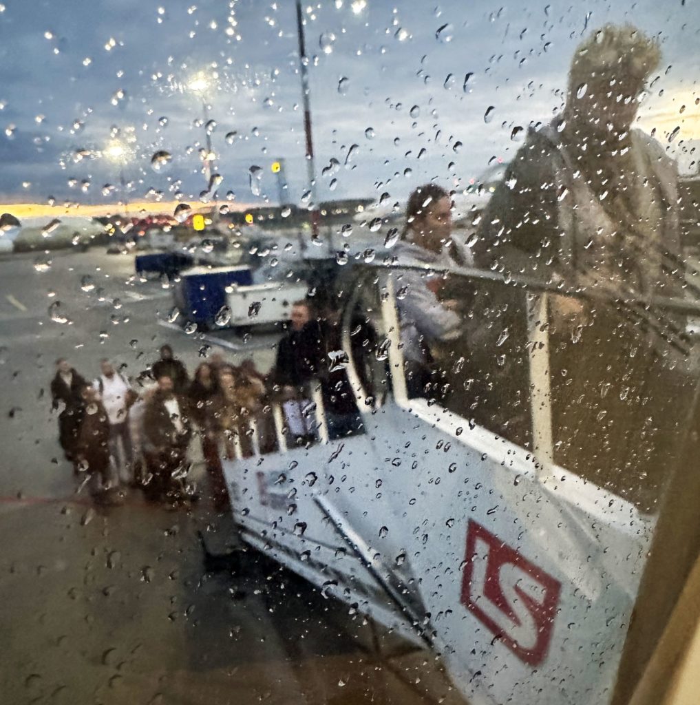 Ingen prioritering av BC inför ombordstigning, kanske för att vi måste åka buss ut till planet och de inte tycks ha två bussar. Istället packas alla in i samma buss. Endast min snabbhet när bussen stannat räddar mig från att hamna i en jättelång kö uppför trappan till Embraerplanet i regnet. LOT:s Priority Boarding lyser starkt med sin absoluta frånvaro.