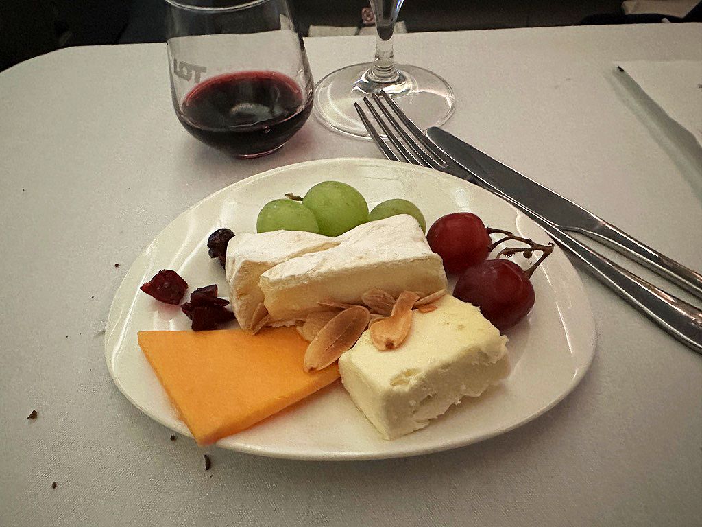 De tre rödvinerna är mediokra viner för en affärsklass, medan det vita Marlboroughvinet från Nya Zeeland och de polska Winnica Cuvée och dessertvinet Winnica Turnau är mer intressanta. Spännande att få pröva några lokala produkter. Men att försöka hitta till exempel en lagrad Bordeaux hos LOT kan vi glömma, något som nästan alltid finns i ansedda flygbolags vinlistor. Inte ett enda av rödvinerna är franskt. Sommelieren har lyckats med bedriften att hitta flera rödviner till ett pris som kunde ha platsat i ekonomiklass. I och för sig kanske prisvärda, men det är tydligt att man sparar hårt vid valen.
