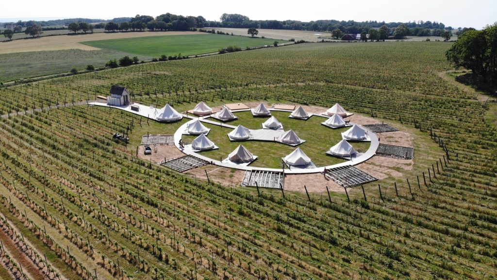 Som Toscana fast i Skåne! På Arlids Vingård Glamping bor du i lyxiga och rymliga tält mitt bland vinrankorna. Perfekt att ha nära till vinprovningen.