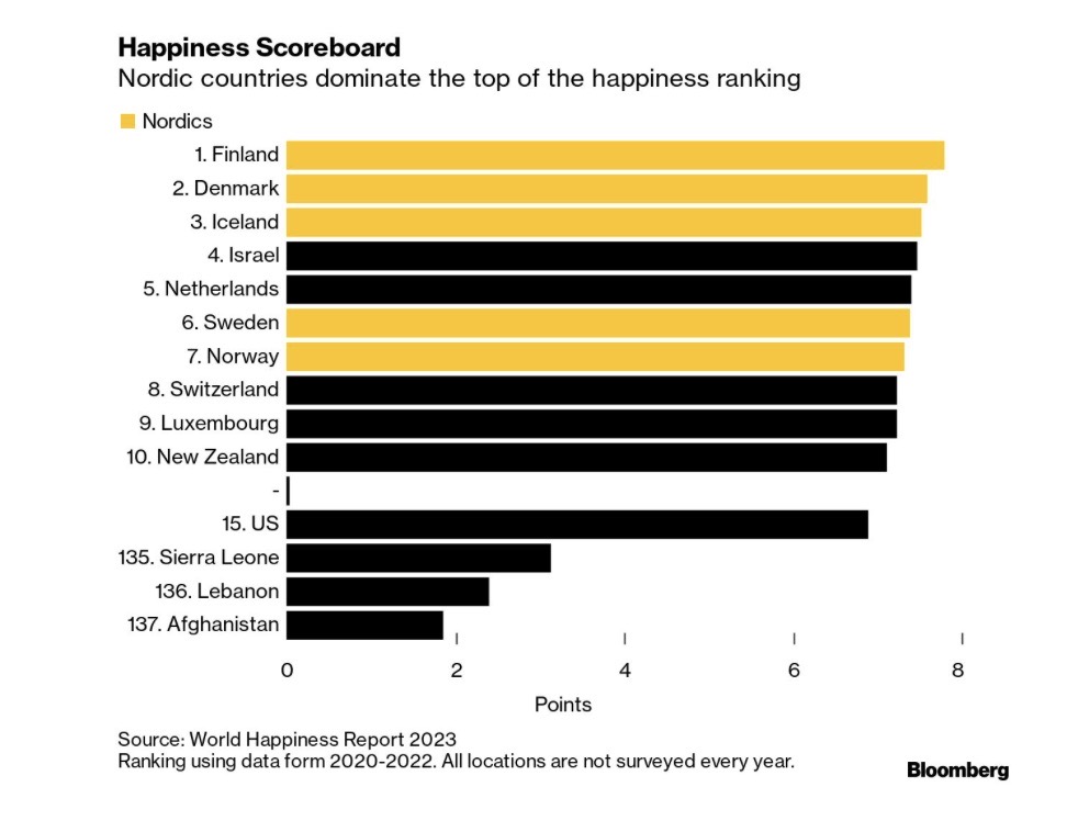 Sverige, på plats nummer 6, är näst lägst bland de nordiska länderna. Det är fortfarande en av de lyckligaste i världen. Fast här görs en omtvistad koppling till hur Sverige hanterade pandemin, med en betydligt mindre nedstängning än andra länder.