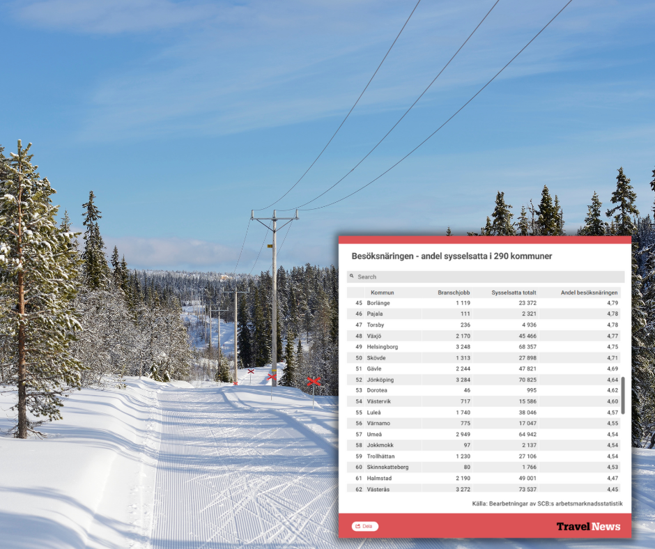 Travel News har undersökt var besöksnäringen har största betydelse för sysselsättningen i kommunerna utifrån SCB:s arbetsmarknadsstatistik.