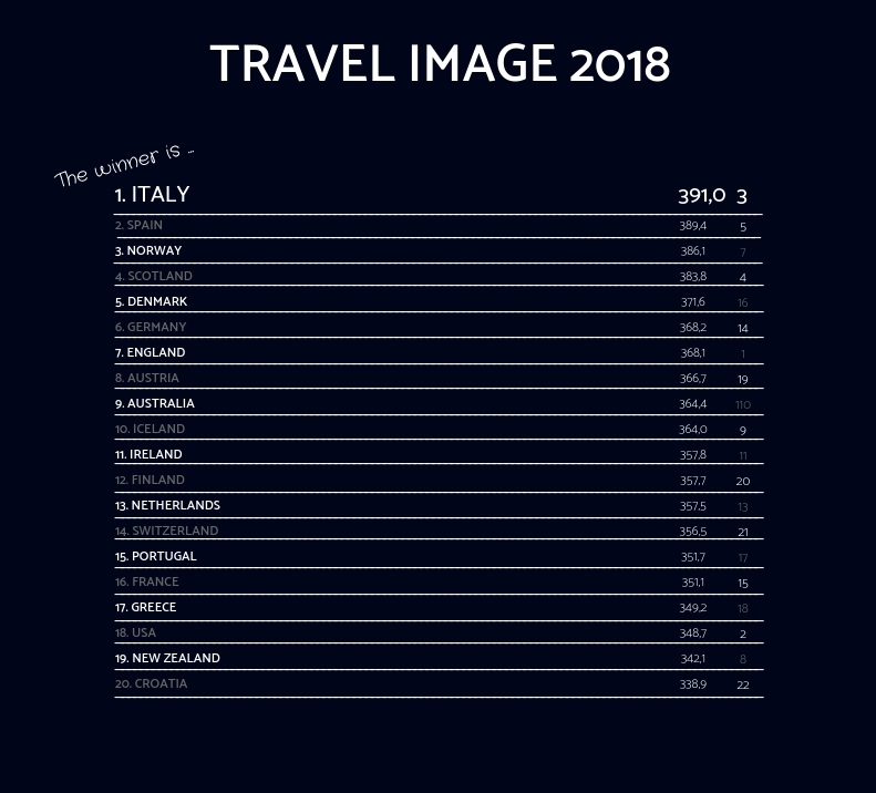 En ny undersökning om svenskarnas resvanor och en image-analys av 101 destinationer visar vi helst reser inom Europa. Italien hamnar på en klar förstaplats. Australien är det enda icke-europeiska resmålet bland topp 10 på image-listan. För tre år sedan såg bilden annorlunda ut, bland annat har USA backat från plats två (2015) till plats 18 i årets mätning.