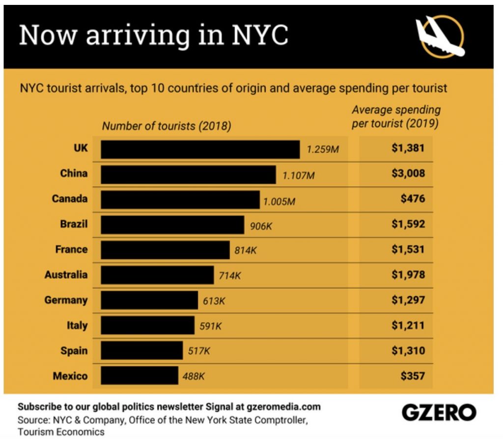 New York är det i särklass största resmålet i USA och pandemin har slagit hårt mot stadens turismnäring och hela stadens ekonomi. Hela omfattningen av besöksnäringens ekonomiska betydelse har beräknats till 70 miljarder dollar.