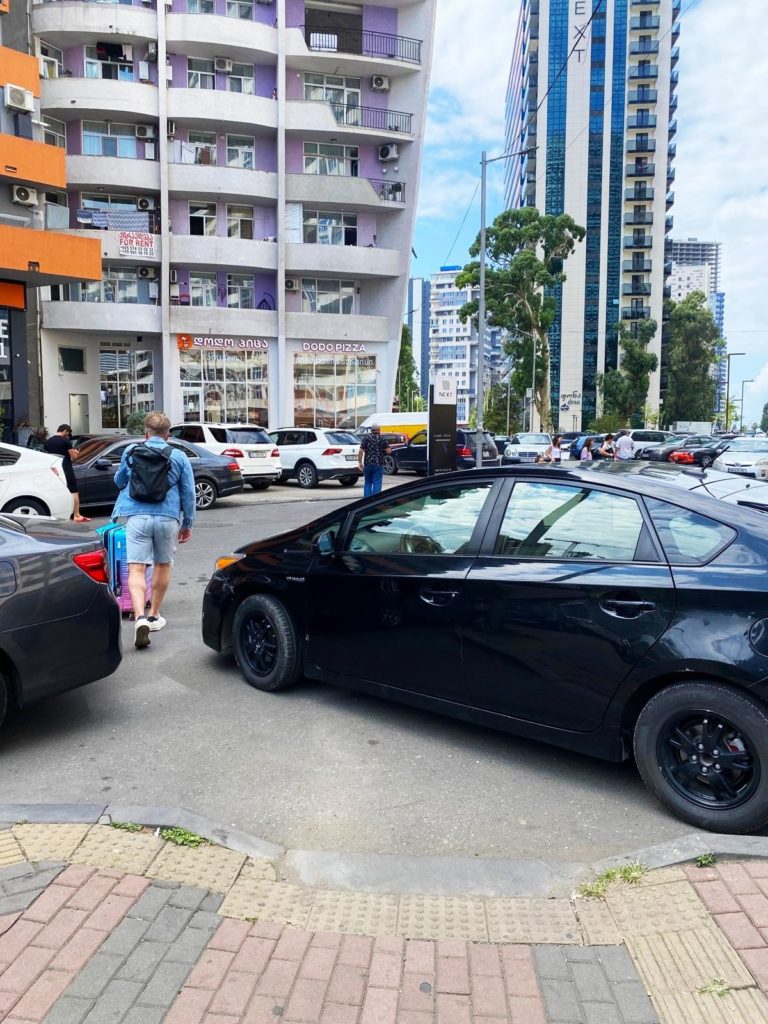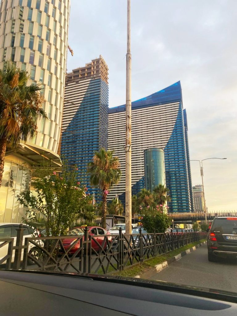 Batumi är Georgiens Dubai. Stadens är en gigantisk byggarbetsplats och vi bor i ett nybyggt komplex med 50 våningar. Totalt innehåller de två fastigheterna 10 000 lägenheter. Vi bor på våning 30 i block A och har en magnifik utsikt över staden och Svarta havet. Huset är förstås inte klart och det saknas bland annat ett parkeringshus. Hittar en ficka några kvarter bort, det känns som ett mirakel för överallt är det bilar som antingen står stilla eller rör sig sakta.