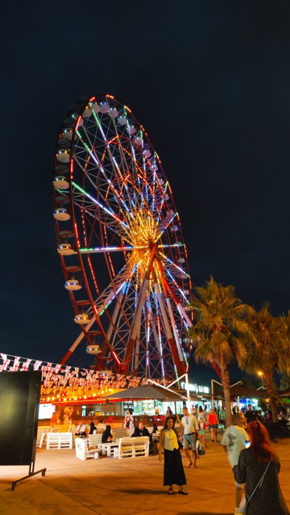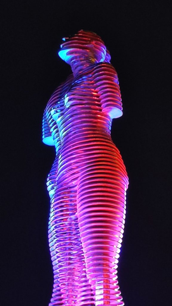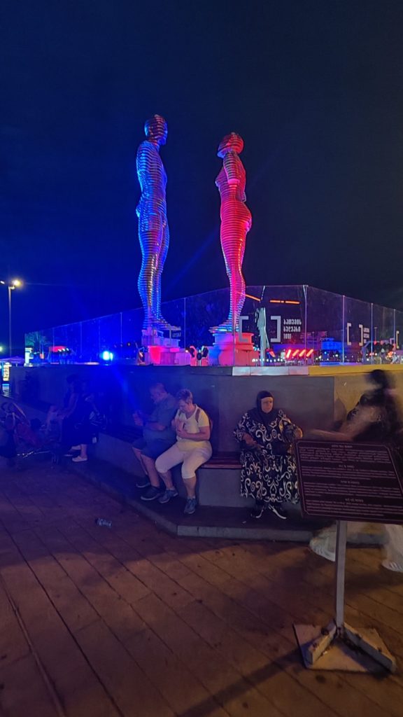 Batumis mest kända konstverk heter Ali och Nino. Den sista var prinsessa och ansvarig för kristnandet av Georgien, knappt 100 år efter Jesus tid på jorden. De första länderna som blev kristna var Etiopien, Armenien och Georgien. Idag är runt 89 procent av befolkningen fortfarande kristna i olika former. 10 procent är muslimer och resten typ kurdiska jezidier. Det lär finnas 10 000 judar här. Ali är enligt en skylt vid konstverket en aristokrat från Azerbaijan. De åtta meter höga statyerna av stål rör sig sakta mot och från varandra. Verket hade vernissage på Biennalen i Venedig, men står sedan 2010 i hamnen. Mitt kriterium för bra konst är att den balanserar på gränsen till kitsch. Ali och Nino är långt över denna linje, men funkar uppenbarligen bra på Instagram. Här finns också ett litet nöjesfält som för tankarna till Coney Island i New York.
