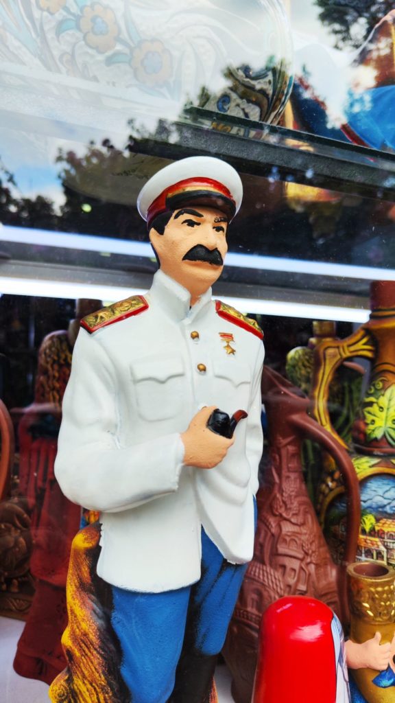 Landet blev självständigt 1918 efter ryska revolutionen, men invaderades 1921 på order av Stalin som kom från just det Georgien. Stalin var det enda överlevande barnet till en alkoholiserad skomakare. Planen var att han skulle bli präst, men han var för radikal och blev med tiden diktator i Sovjet. I hans hemstad Gori finns världens enda kvarvarande Stalin-museum. I turistbutiker ser jag små Stalin-statyer.