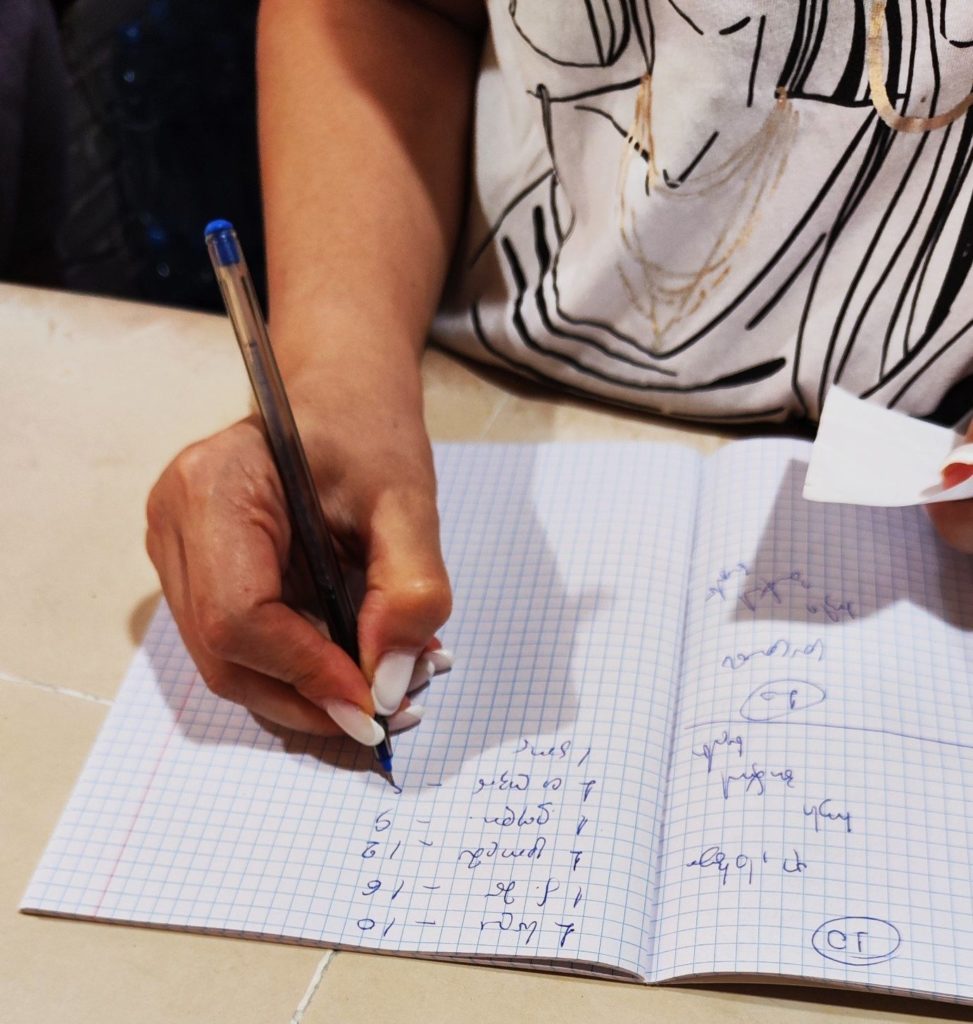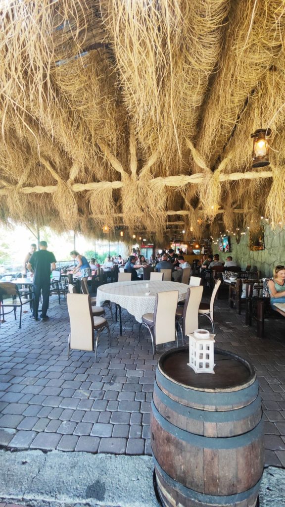 Dock är det varm stämning på alla restauranger vi besökt och en känsla av att alla gör så gott de kan. Gästerna är ofta stora familjer. Att titta i mobiltelefonen samtidigt som man äter är lika vanligt här som hemma i Sverige. Tyvärr har inte hörlurarna kommit till Georgien än.