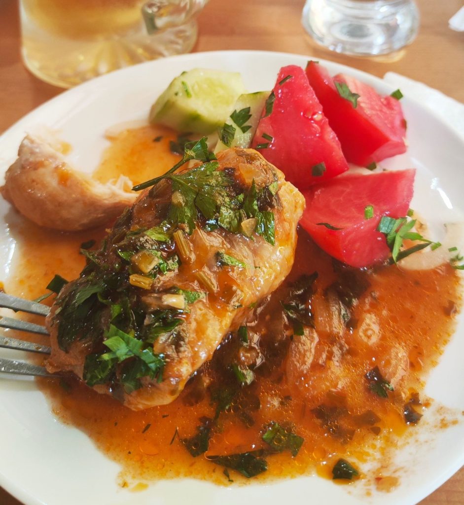 Den bästa rätten på alla restauranger är georgisk sallad som består av skalad tomat, skalad gurka och krossade valnötter i olivolja. Grönsakerna här är helt magiska. Fisk är också en vinnare. Nationalrätten Khachapuri är ett luftigt bröd fylld med ost och ägg. Inte riktigt min favorit, jag gillar inte geggig mat. Grillat kött och grillade grönsaker blir aldrig fel var man än är i världen, men här är dessa rätter ljuvliga.