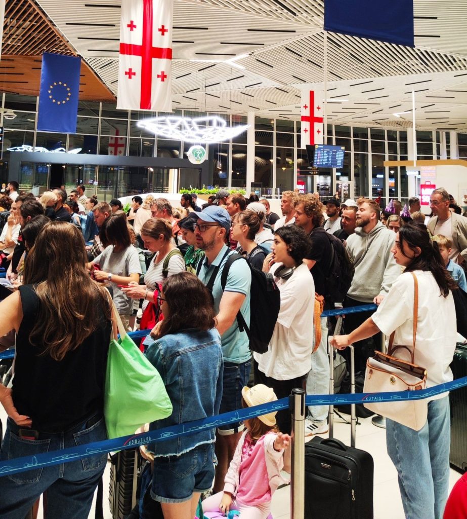 Jag har flugit några gånger med Wizz Air och känt att flygbolaget är Ryanairs elaka lillasyster. När vi skulle flyga från Kutaisis nya flygplats mot Köpenhamn var hon extra jävlig. Först fick vi köa – förstås stående – i drygt 60 minuter för att checka in vårt bagage. Sen tog det “bara” 45 minuters köande att passera säkerhets- och passkontrollen. Sen var det bara att jäkta till det fullsatta planet. Gĺöm shopping av billig sprit och presenter till er därhemma.