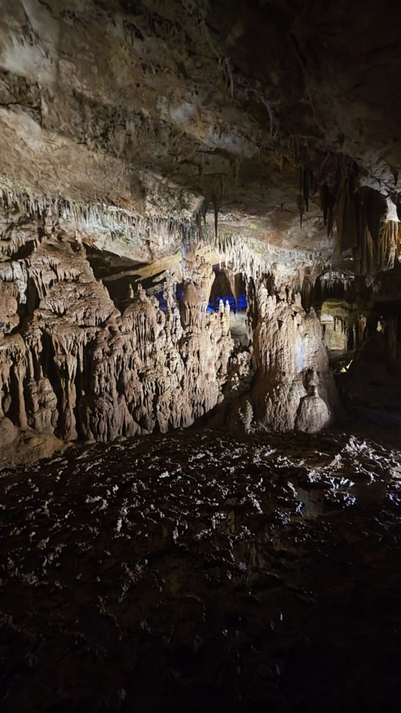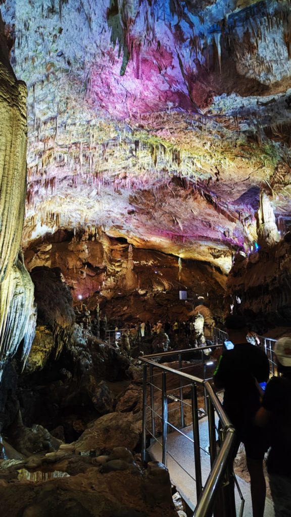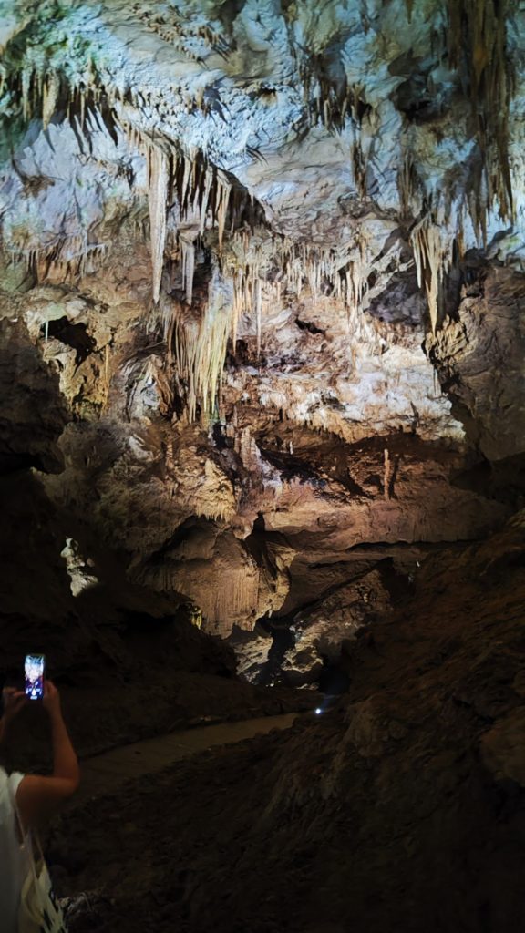 Vi hann även med en enkel lunch innan vi körde vidare mot nästa misstänkta turistfälla: Prometheus Cave. Inte heller här var vi ensamma, men sånt är livet på resa i en nation som satsar på turism. Grottan som upptäcktes 1984 tog en knapp timme att gå igenom. Även den var en hisnande katedral som naturen skapat under 24 miljoner år mellan 20 och 80 meter under marken. Ljussättningen var fantastisk, liksom musiken i de största salarna. Vår guide var en sträng kvinna som rabblade fakta på georgiska, ryska och engelska i en liten högtalare. I grottan var det “bara” 15 grader. Jag misstänkte att det skulle bli kallt, men återigen blev det bara livsnödvändig svalka.