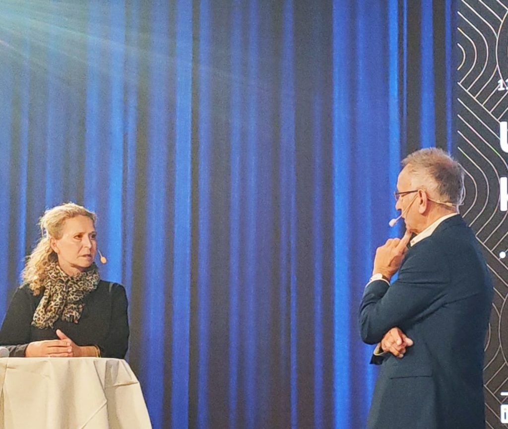 Jan Wifstrand intervjuar Mia Spendrup på Fastighetsvärldens seminarium Hotell & Fastigheter 2024 på Grand Hotel.