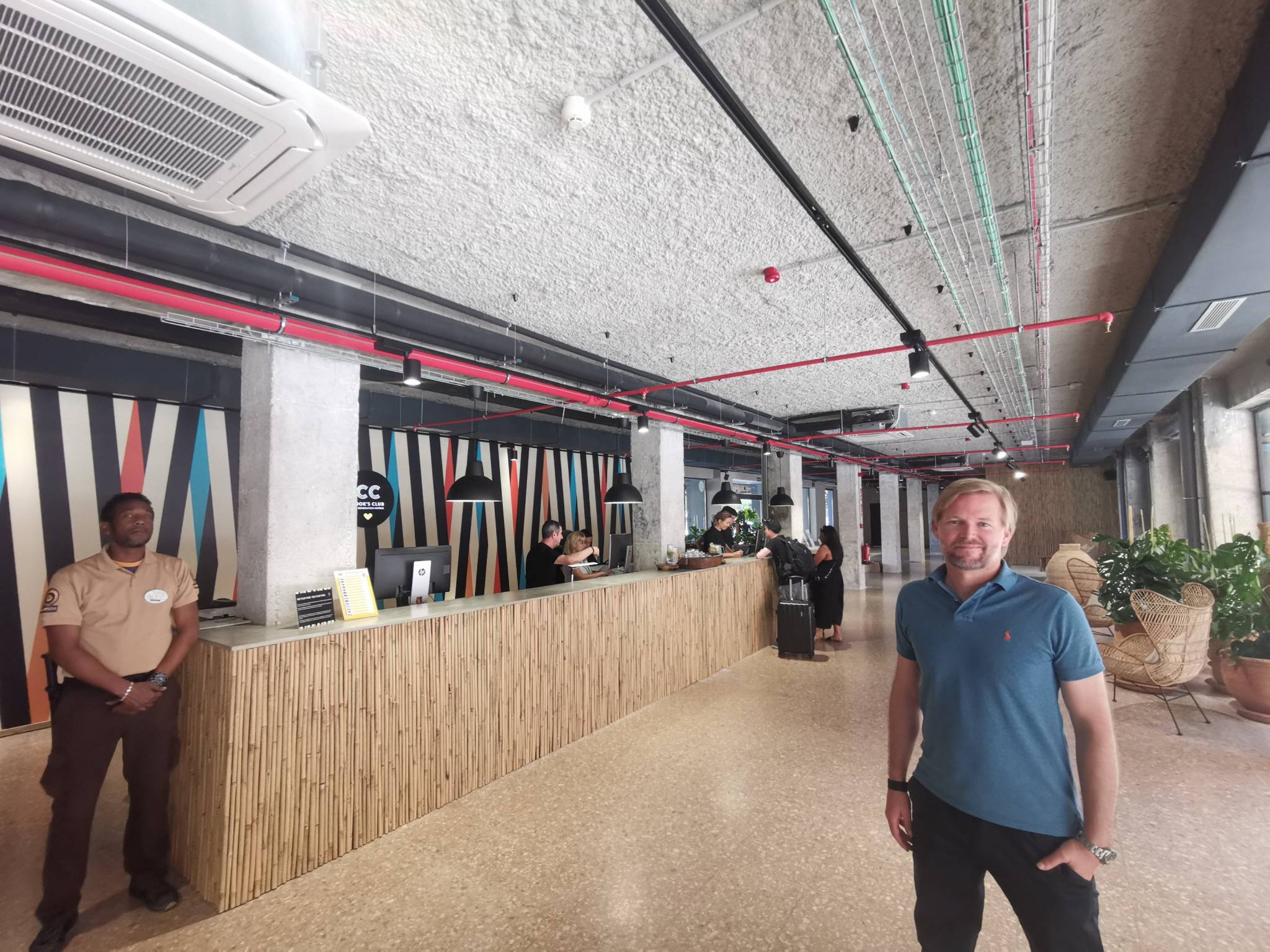 Det viktigaste när man kommer in på hotellet är att man ser allt. Receptionen som tidigare låg rakt in är nu till höger och istället ser man långt borta en bar och ett poolområde. Från klockan 11 fram till midnatt har man en DJ på plats som spelar den skönaste musiken. Borta är all inclusive och bufféerna, istället har man byggt en ny krog i markplan med fem köksstationer där gästerna kan beställa och se på när deras mat lagas direkt.